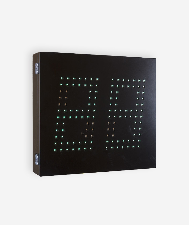 Realizzato con Led RGB ad elevata intensità, è gestito da microcontrollore e può essere alimentato e comandato direttamente dalla lanterna semaforica a cui è abbinato. Il dispositivo è formato da un display per il conto alla rovescia a due cifre in grado di visualizzare i numeri nei diversi colori coerentemente con le luci del semaforo.